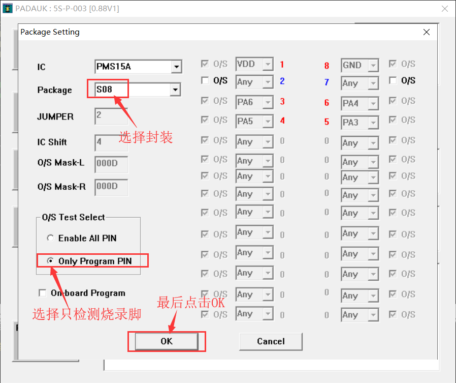 應(yīng)廣燒錄器報(bào)錯(cuò)OS test fail,選擇 only-program-PIN方法即可排除錯(cuò)誤。